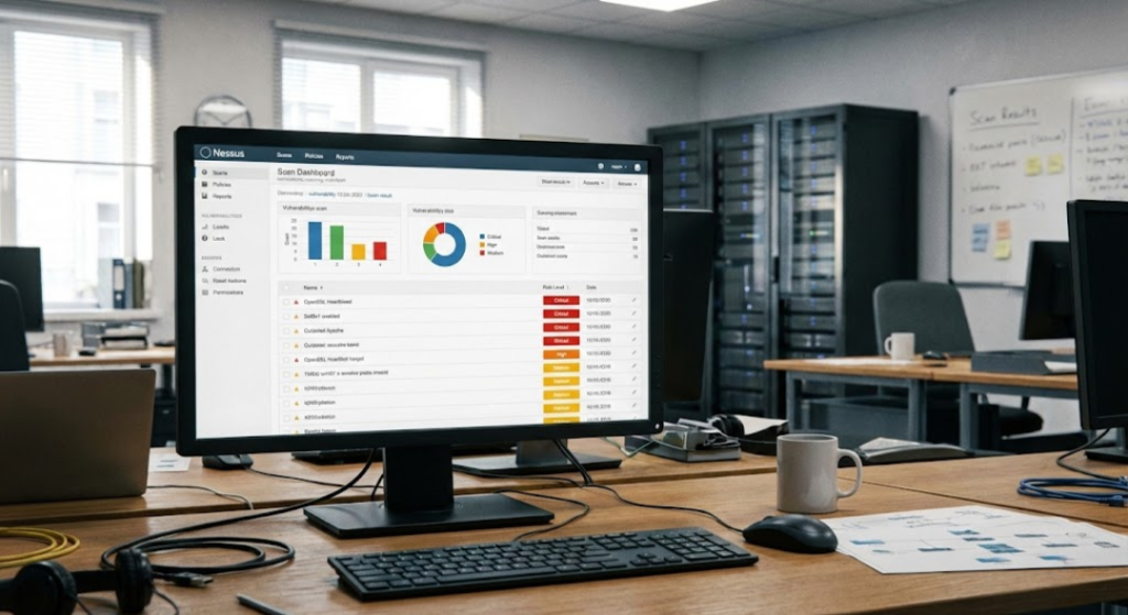 Nessus scans servers, networks, and systems to find known security vulnerabilities, outdated software, and misconfigurations.